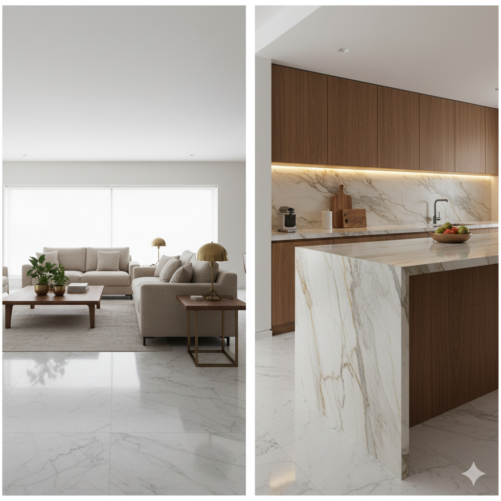 Marble can make a home feel brighter, larger, and more refined. The same stone behaves very differently on a busy floor and on a kitchen or vanity counter. Floors need grip, low glare, and patterns that age gracefully with daily traffic. Counters need stain resistance, smart finish choices, and edges that are comfortable to live with. This in depth guide explains how to choose confidently for each surface. You will learn what really matters in Indian conditions, from daylight and dust to oil based cooking and festival footfall. You will also see clear finish and thickness recommendations, room by room picks, and a buying checklist that prevents costly rework.