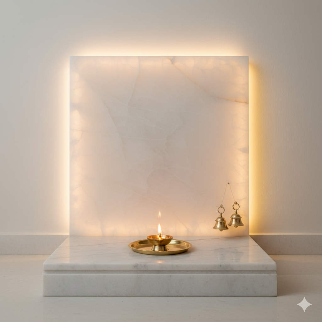 A home mandir is more than a decorative nook. It is the quiet centre of the house where light, fragrance, and intention gather every day. Marble is a natural fit for this space because it carries purity, reflects light gently, and ages gracefully. The right design turns even a small corner into a dignified shrine that feels sacred without taking over a room. In Indian homes, practical details matter as much as beauty: safe diya placement, easy cleaning after prasad and agarbatti, discreet storage for puja items, and lighting that soothes the eye instead of glaring.